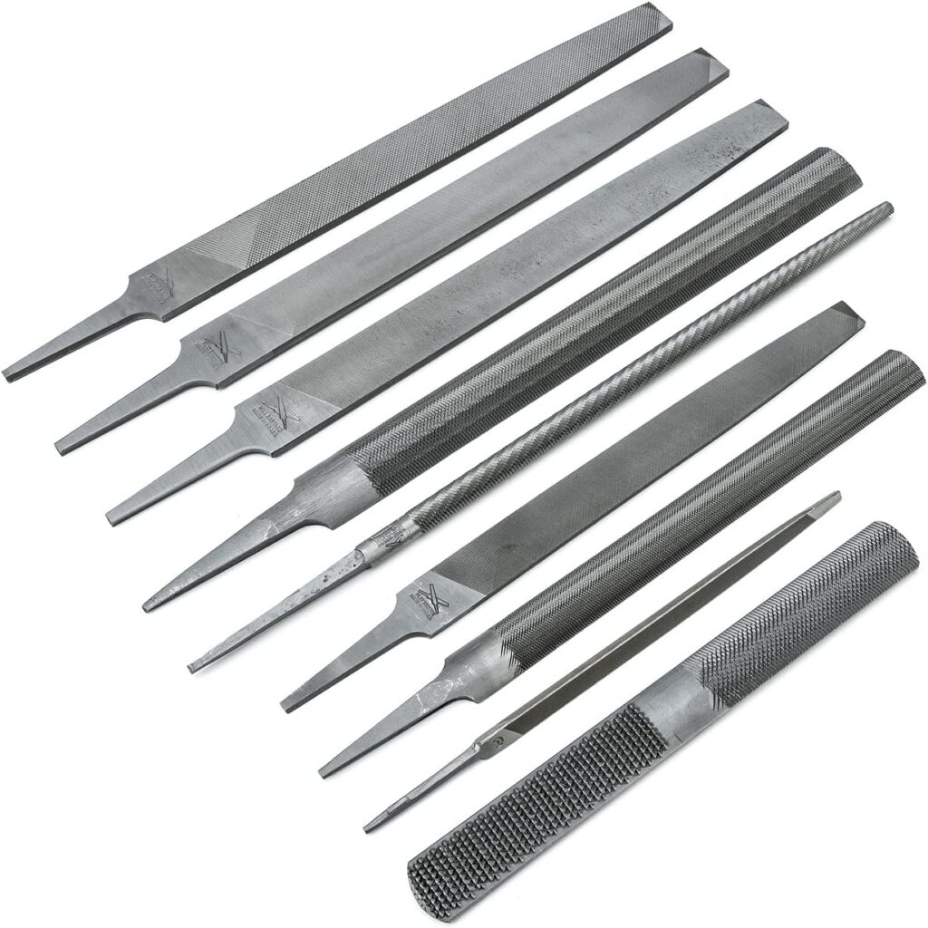 The Nicholson set is one of the most trusted collections on the market. You get a range of cut profiles including flat, round, half-round, and triangular files, all made from hardened alloy steel. The teeth hold their edge through extended metalworking sessions, and the set handles wood shaping equally well.